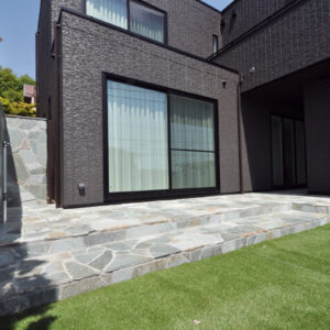 O様邸/玄関ポーチ・乱形石のデッキテラス
