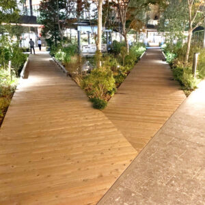グリーンスプリングス:広場の枕木通路・ウッドデッキ/2020年3月頃竣工