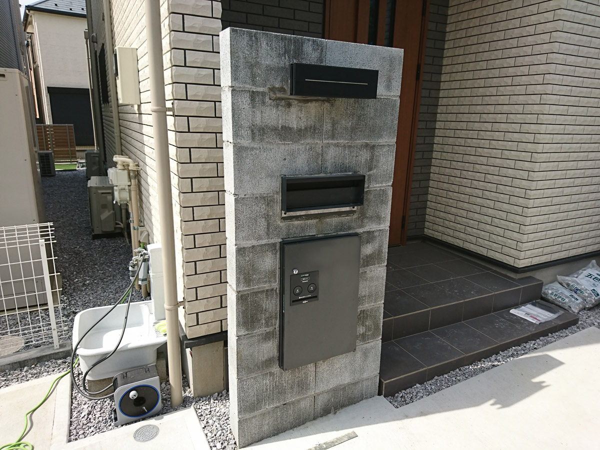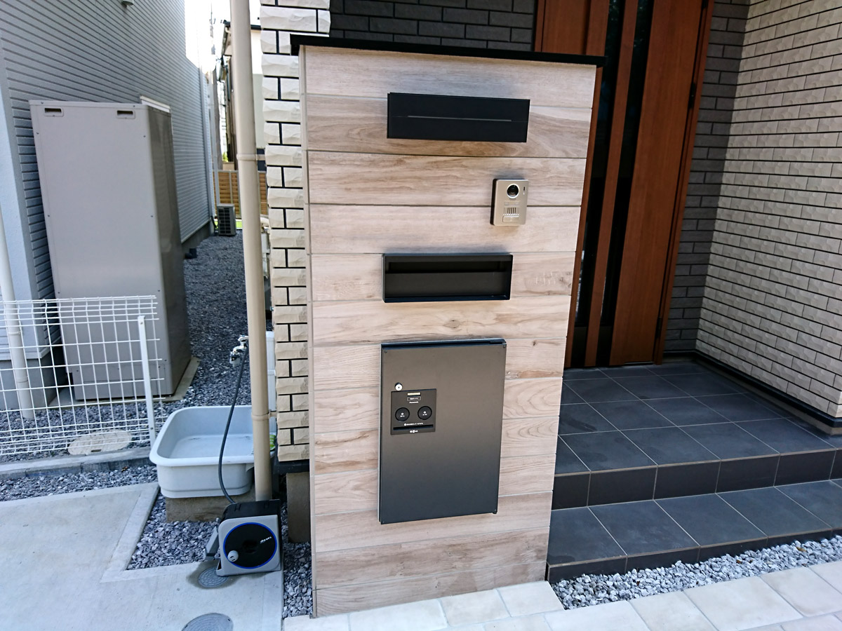 ベーシックなコンクリートブロックの門柱や玄関アプローチも、タイルのテクスチャーが加わることで奥行きを感じる上質な外構デザインに。宅配ボックスや表札などの機能性はそのままに、豊富なタイルデザインから住まいにあったコーディネートをお楽しみいただけます。
