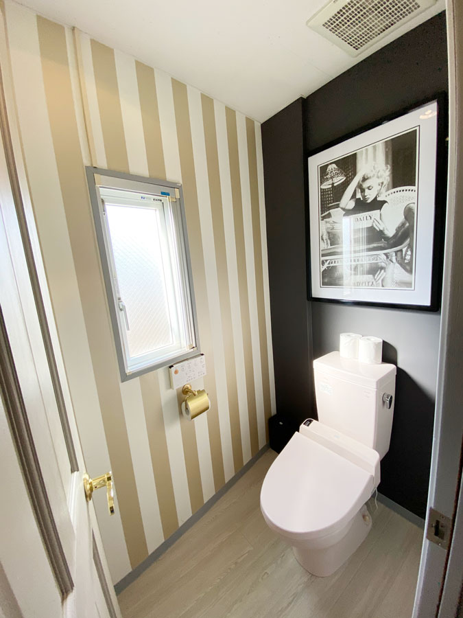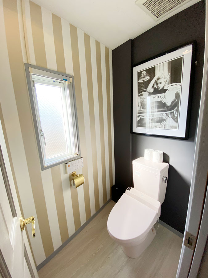 トイレ内装には、世界中の人々に愛され続けているアメリカを代表する女優「マリリン・モンロー」のアートを加えてアメリカを感じる小物を織り交ぜています。