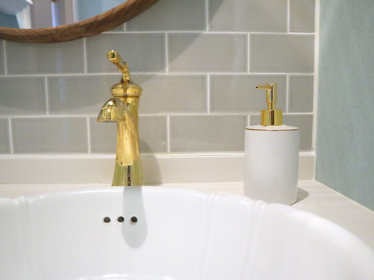 スタイリッシュな埋め込み型洗面ボウルと、伝統的でエレガントなラインとスマートなシルエットが特徴の「デボンシャー」シングルレバー水栓をコーディネート。
