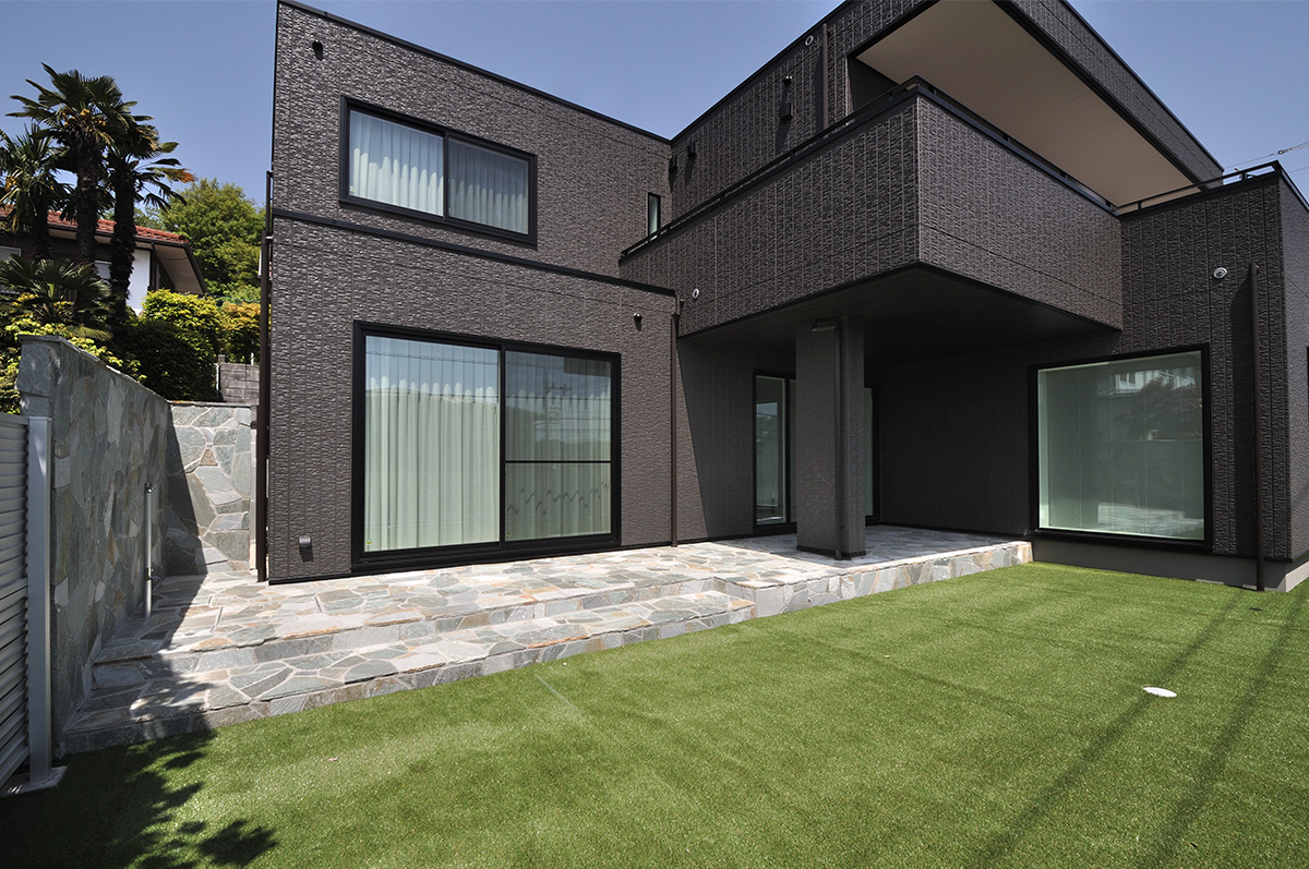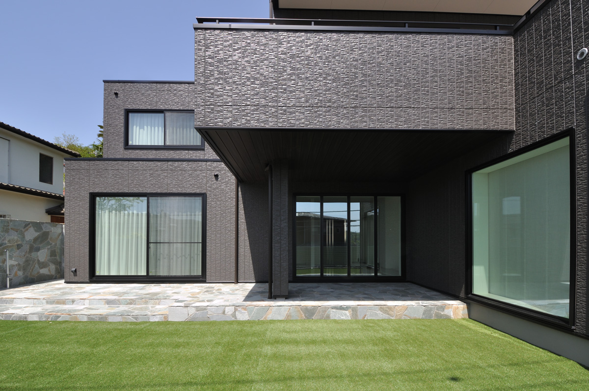 テラス壁は笠石を少し突出させることで、雨垂れによる汚れを軽減する納まりをご提案しました。