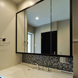とり様邸・コラベルタイルの洗面所