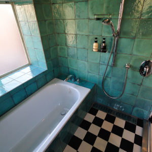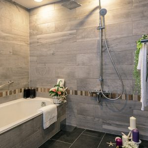 ユニットでありながら総タイル張りのラグジュアリー・バスルーム