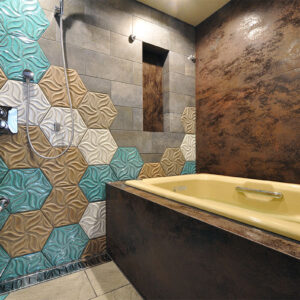 ヘキサゴンタイルと鋳物ホーロー浴槽のバスルーム(wedi自由設計)N様邸浴室リノベーション