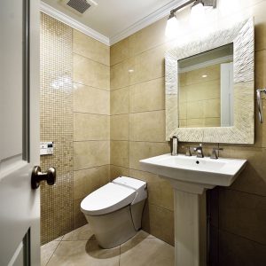 ペデスタルシンクが魅力のラグジュアリーなトイレ空間