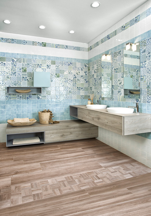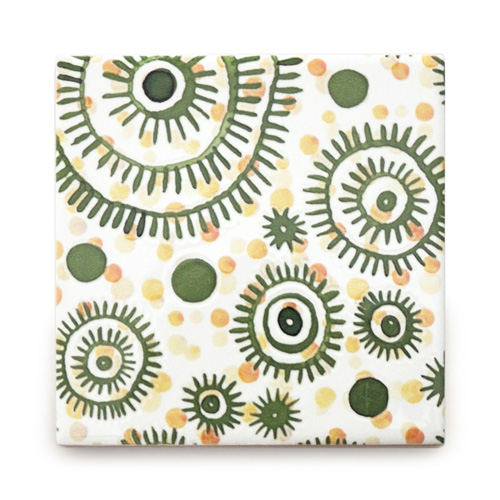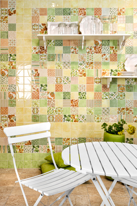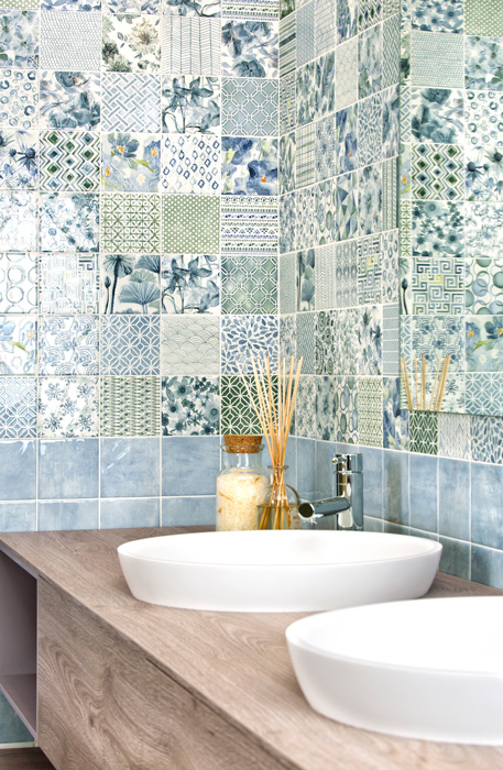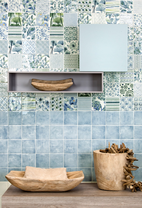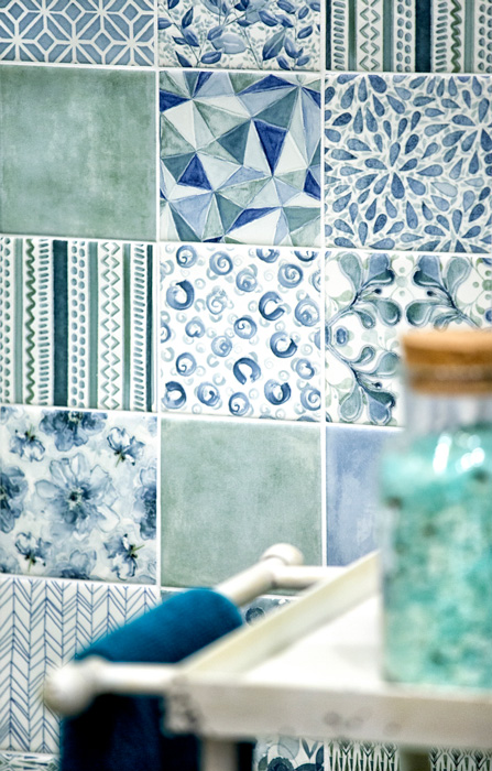 雑貨感覚で取り入れたい柄タイル「AGATA- アガタ」。水彩画のような淡く、繊細な色づかい、ちょっとしたスパイスになる様々なパターン、それでいてちょうどいい10センチ強のサイズ感。どこをとってもかなりの用途幅を感じさせる、類を見ない美しい内装・壁タイルです。おしゃれなカフェのような雰囲気をお楽しみください。