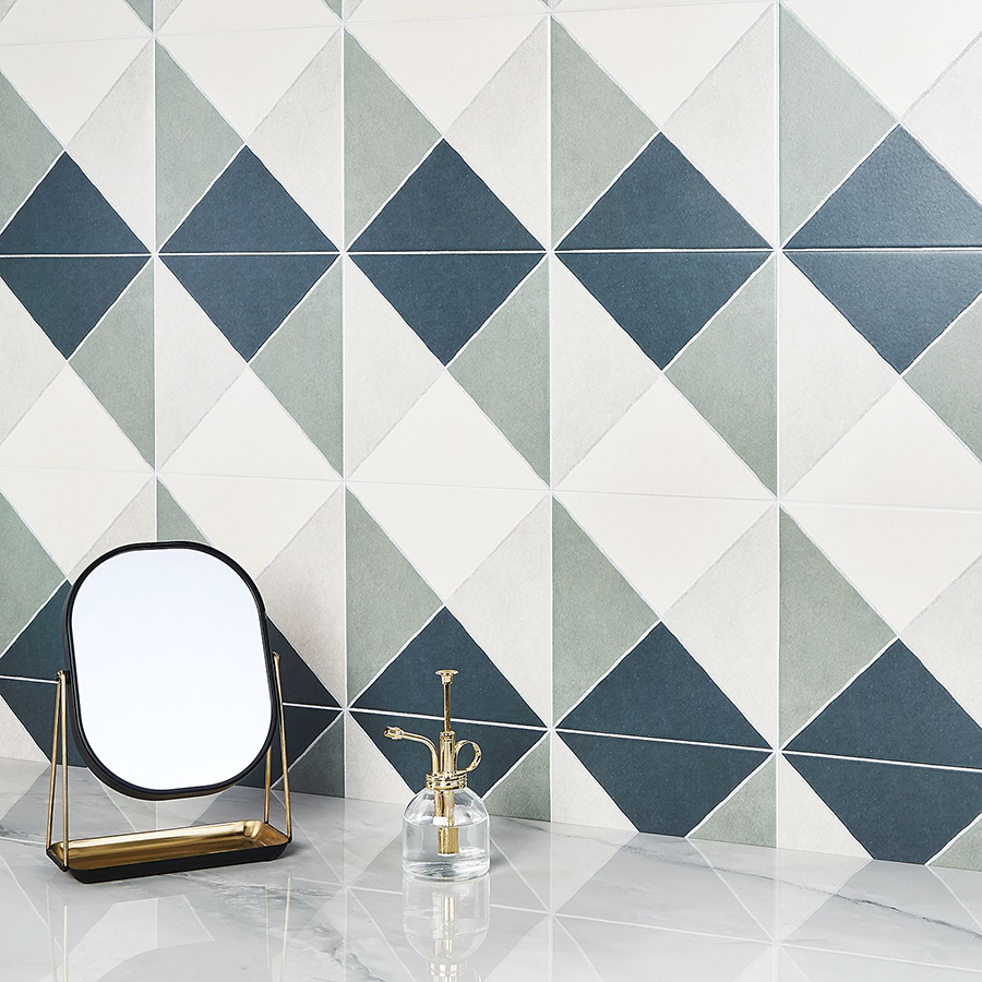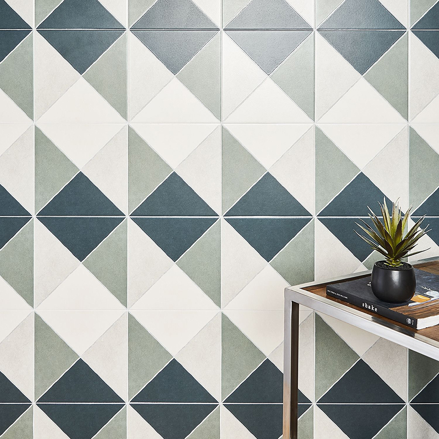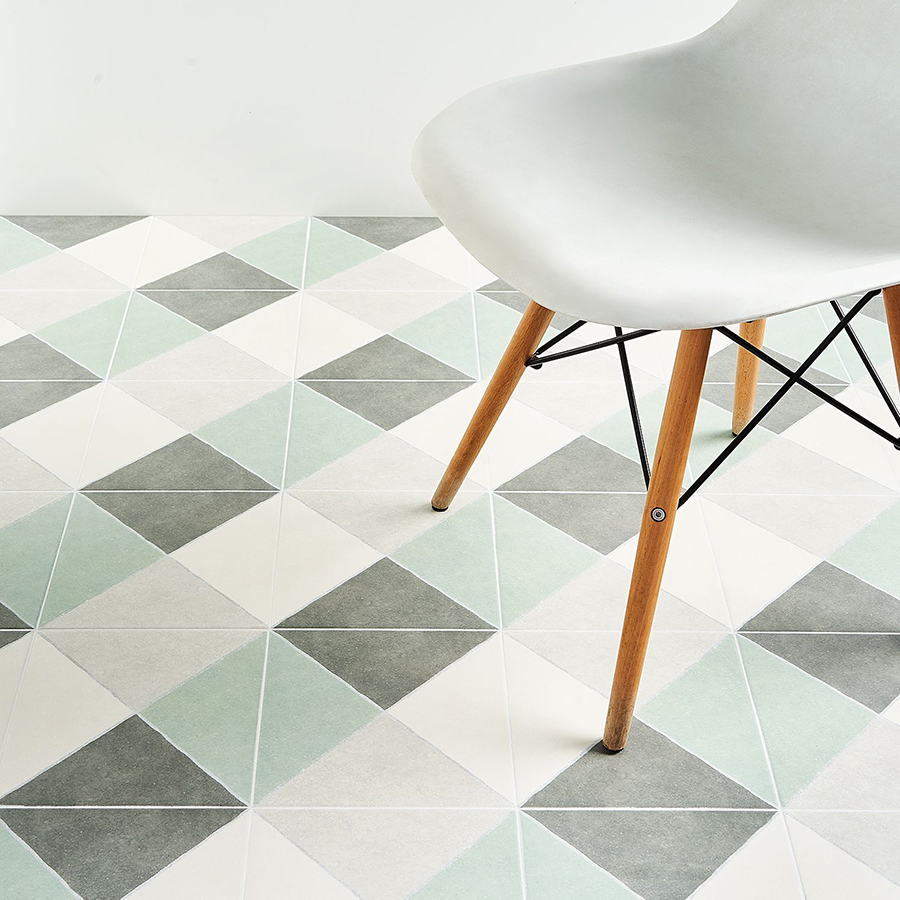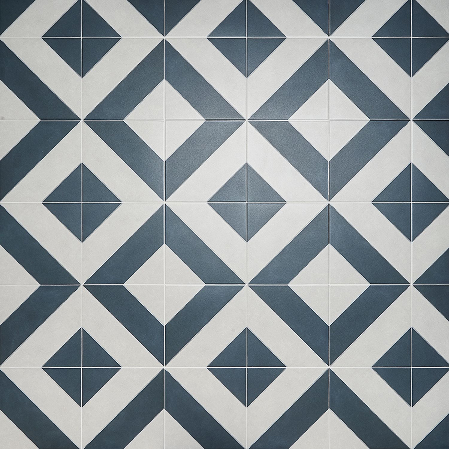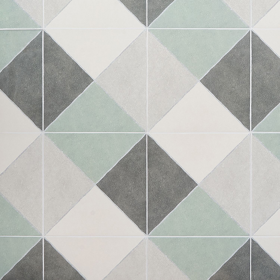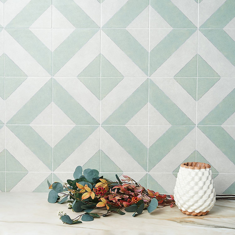 対角線とダイヤモンドの張りパターンで印象が変わる楽しいデザインタイルです。