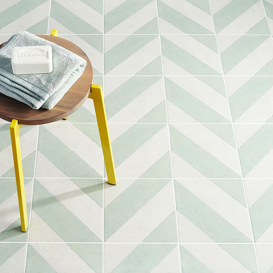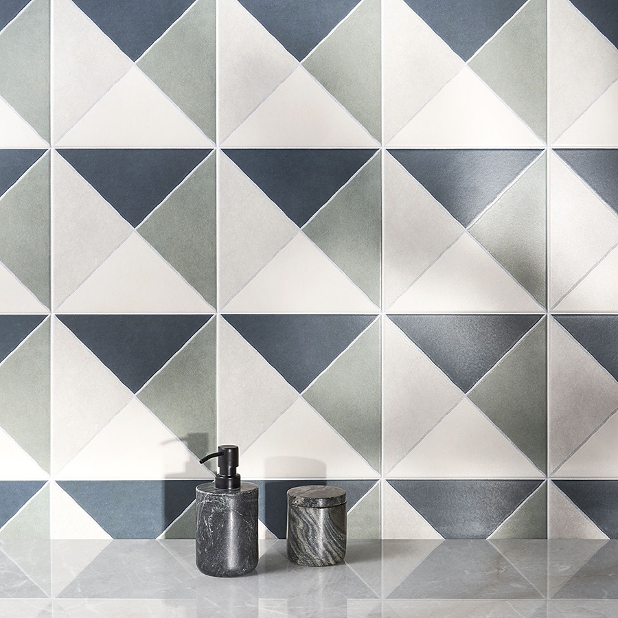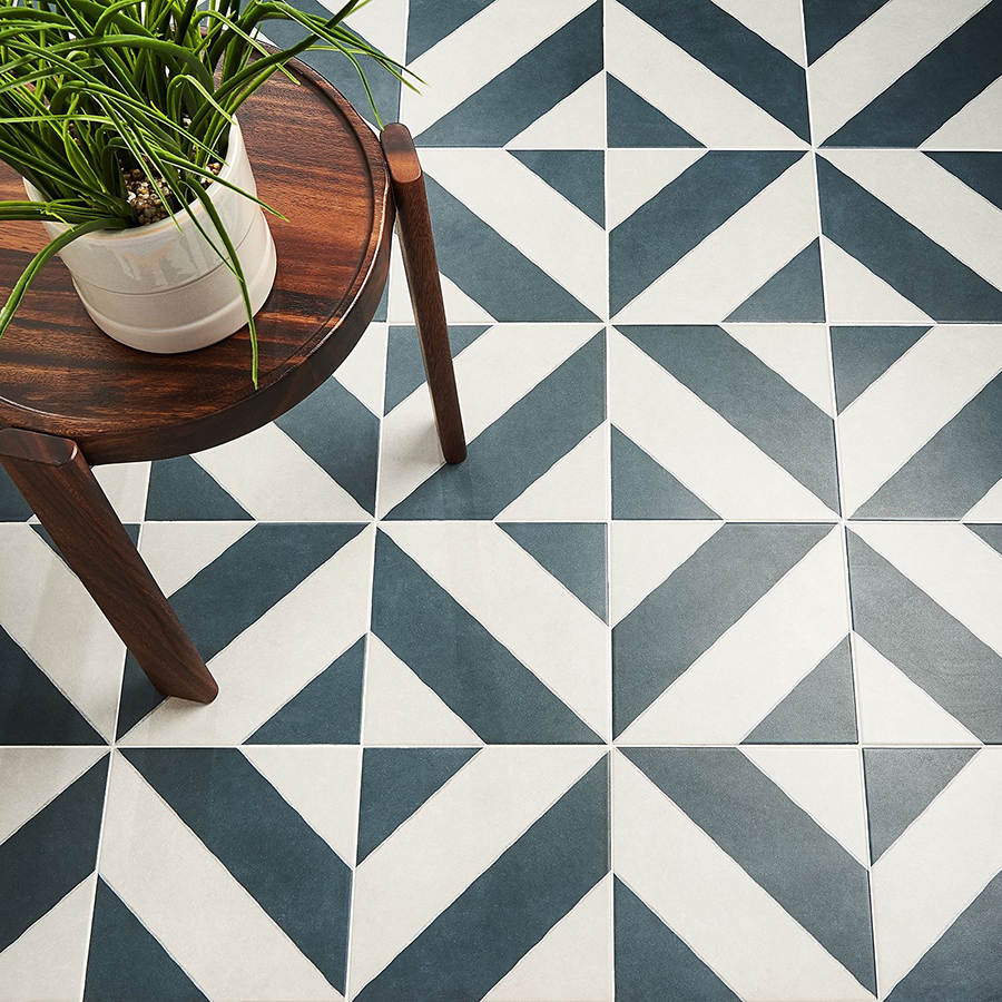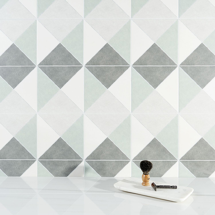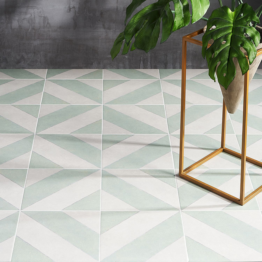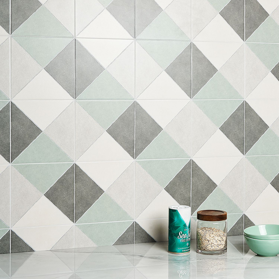 対角線とダイヤモンドの張りパターンで印象が変わる楽しいデザインタイルです。