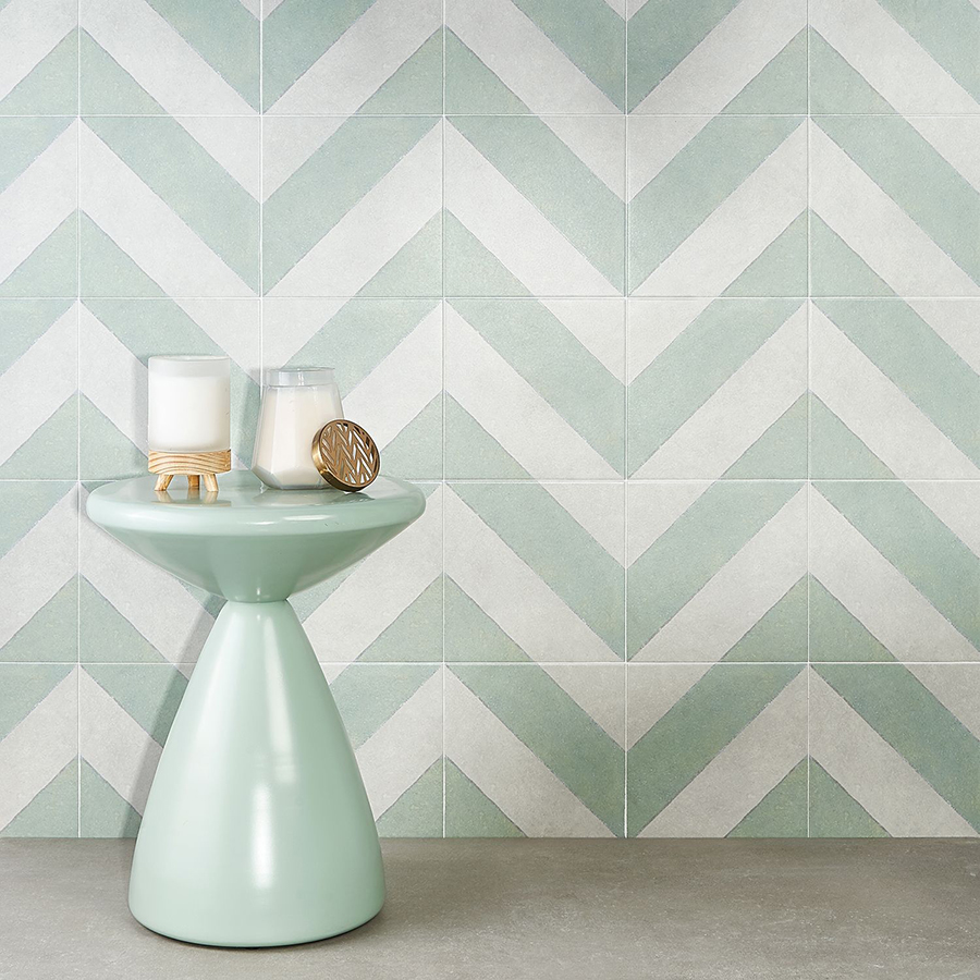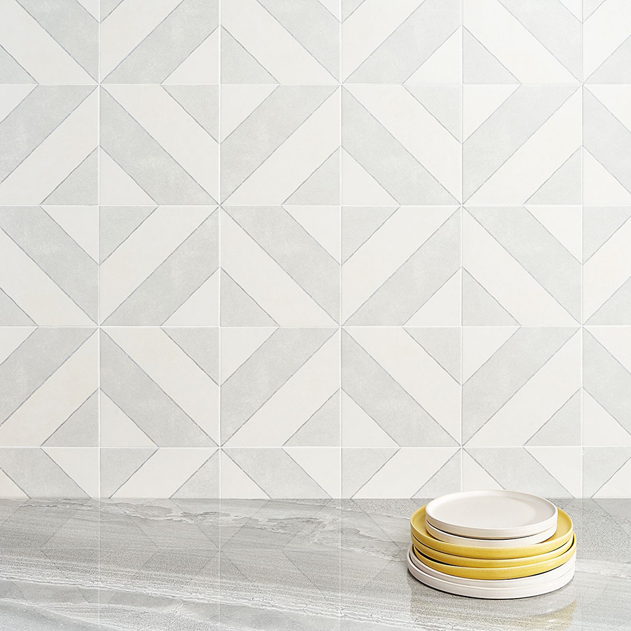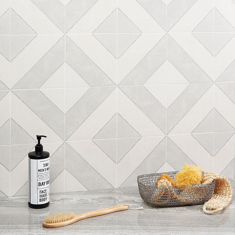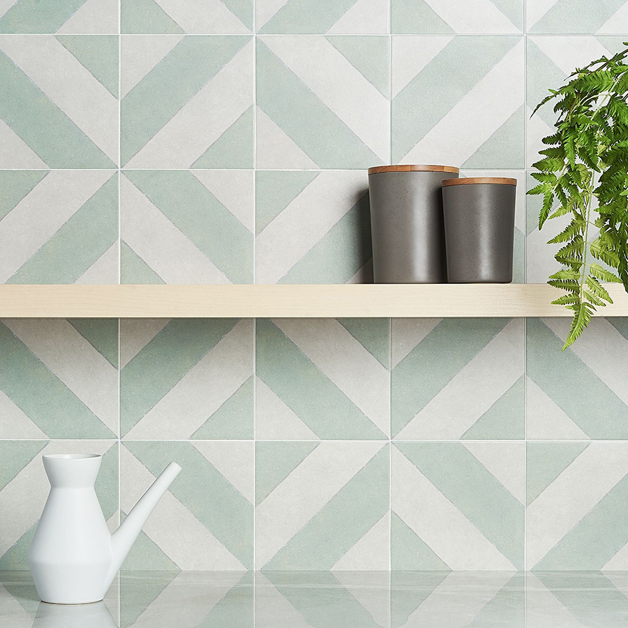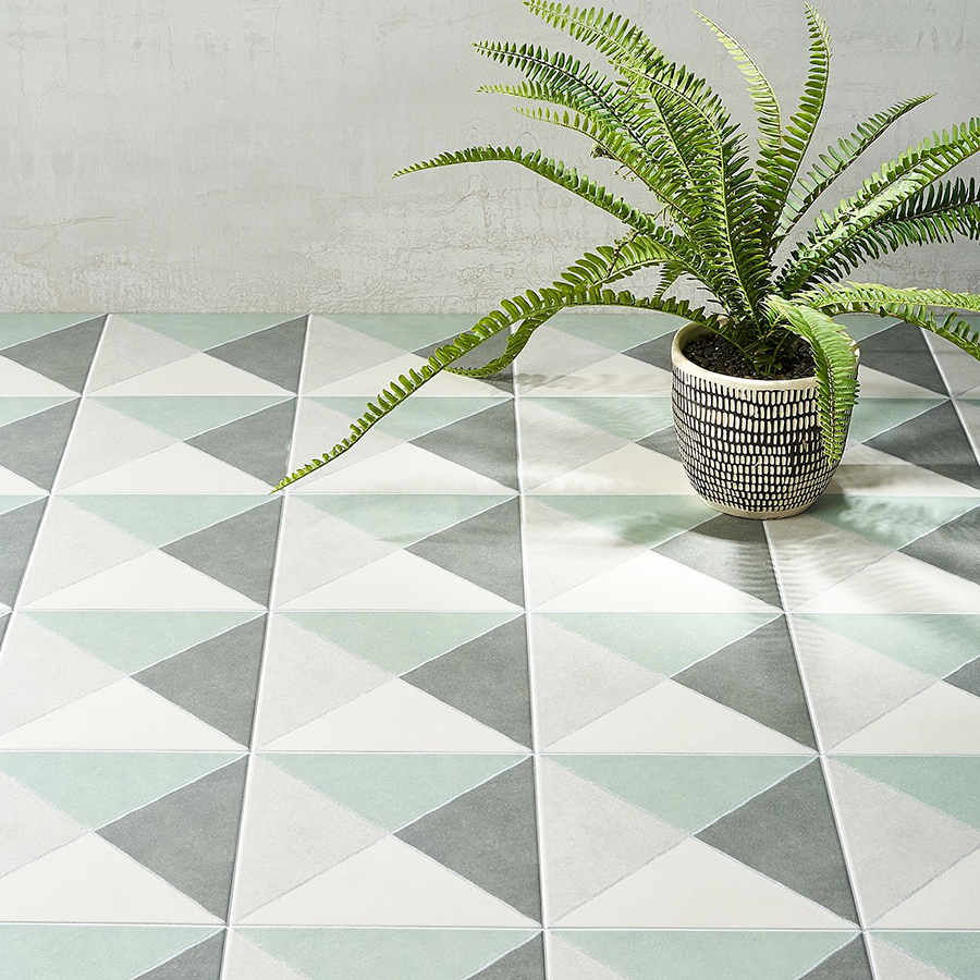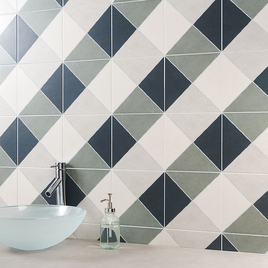 対角線とダイヤモンドの張りパターンで印象が変わる楽しいデザインタイルです。