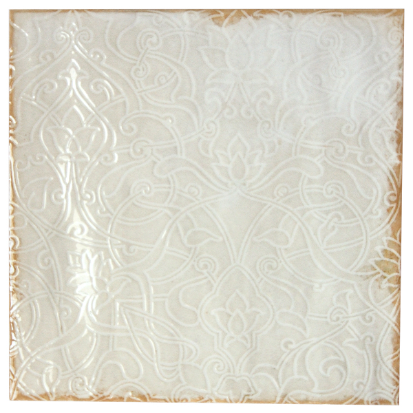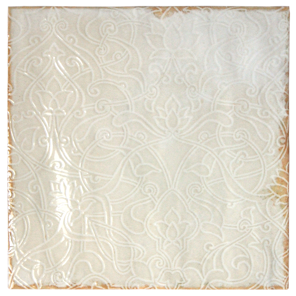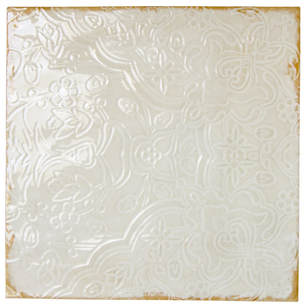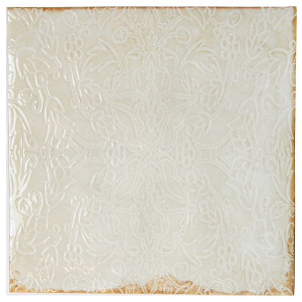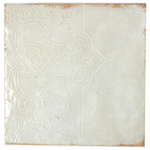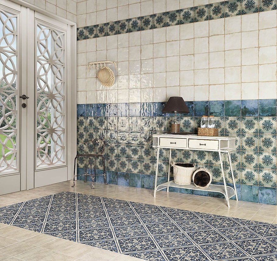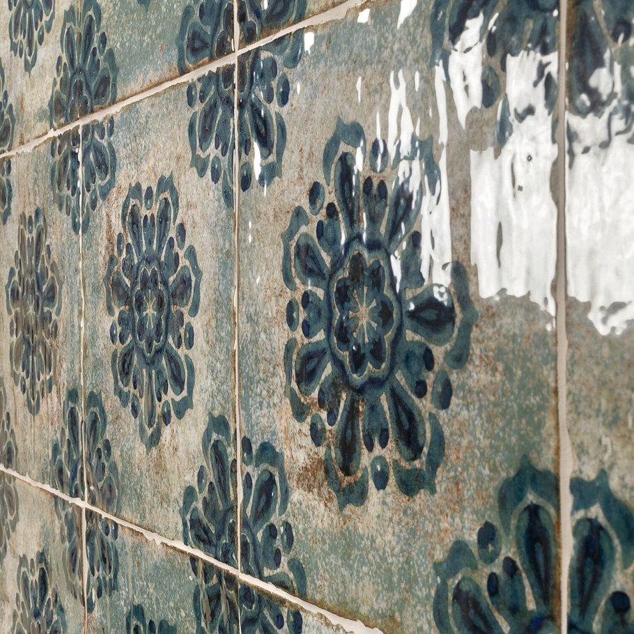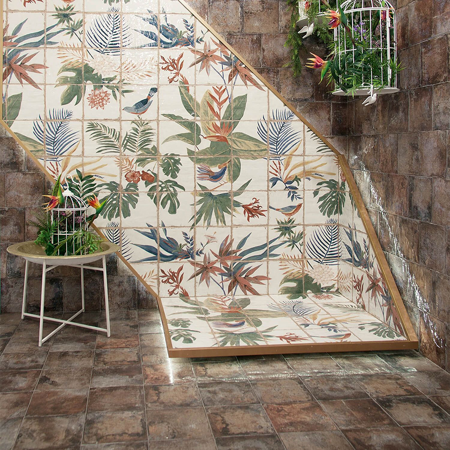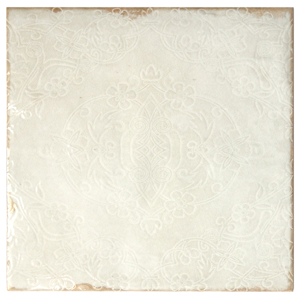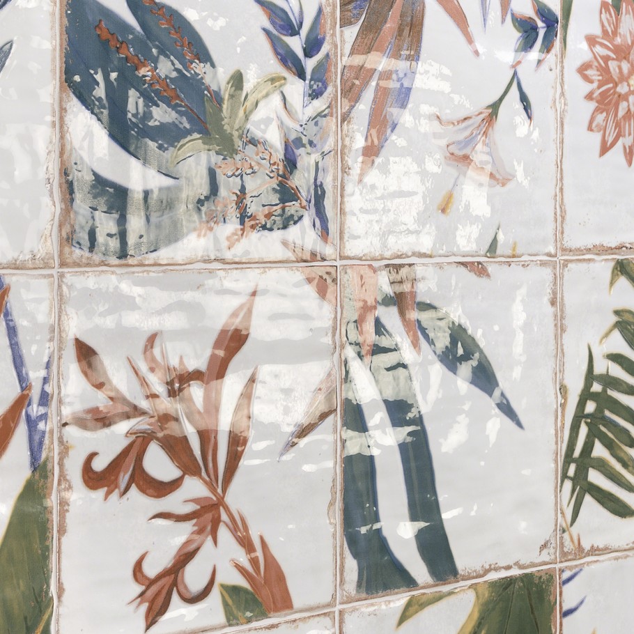 絶妙な陰影でユーズド感のあるツタ模様が描かれたアンティークな柄タイルは、時代を超越した多次元の雰囲気を与えます。
