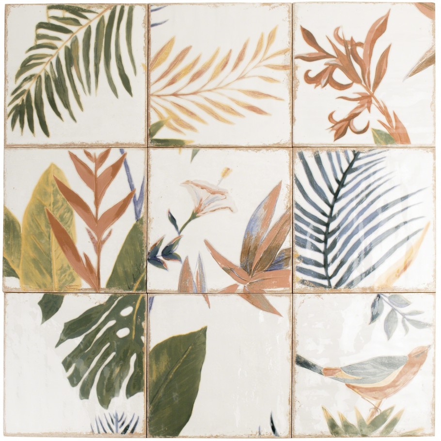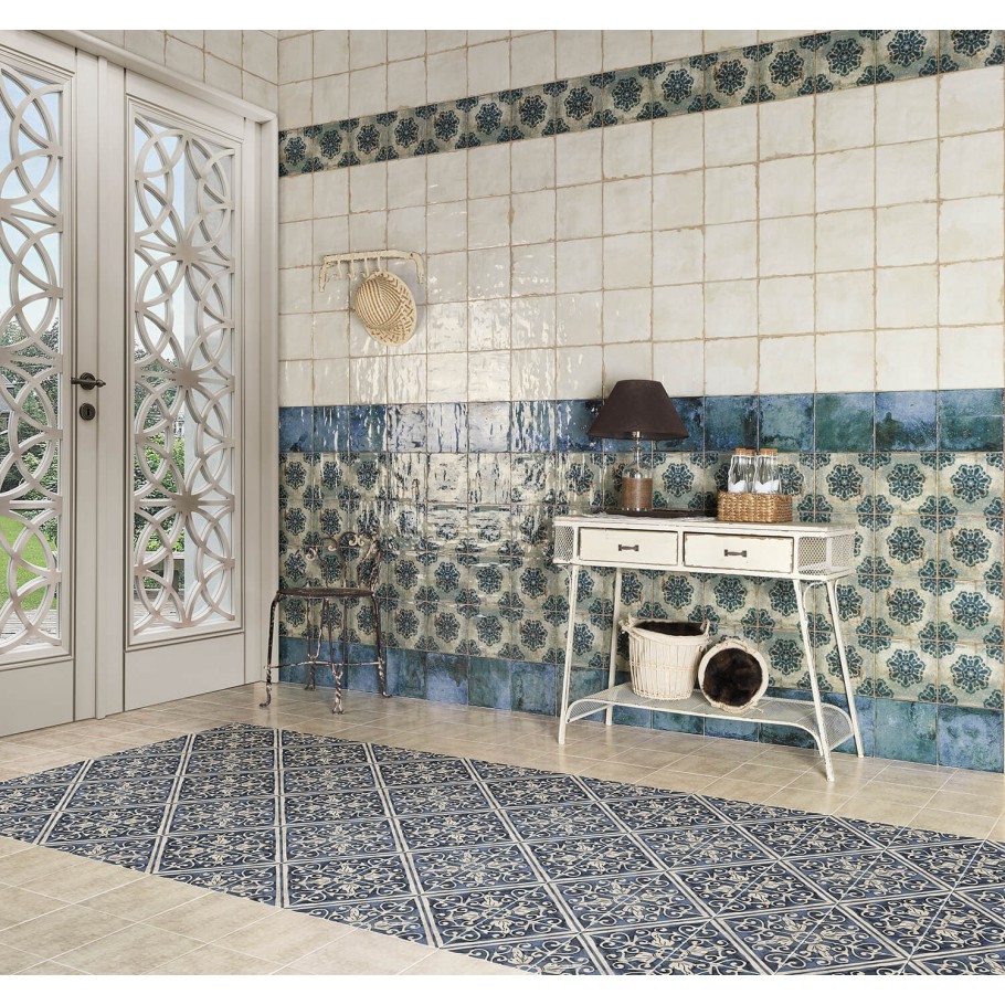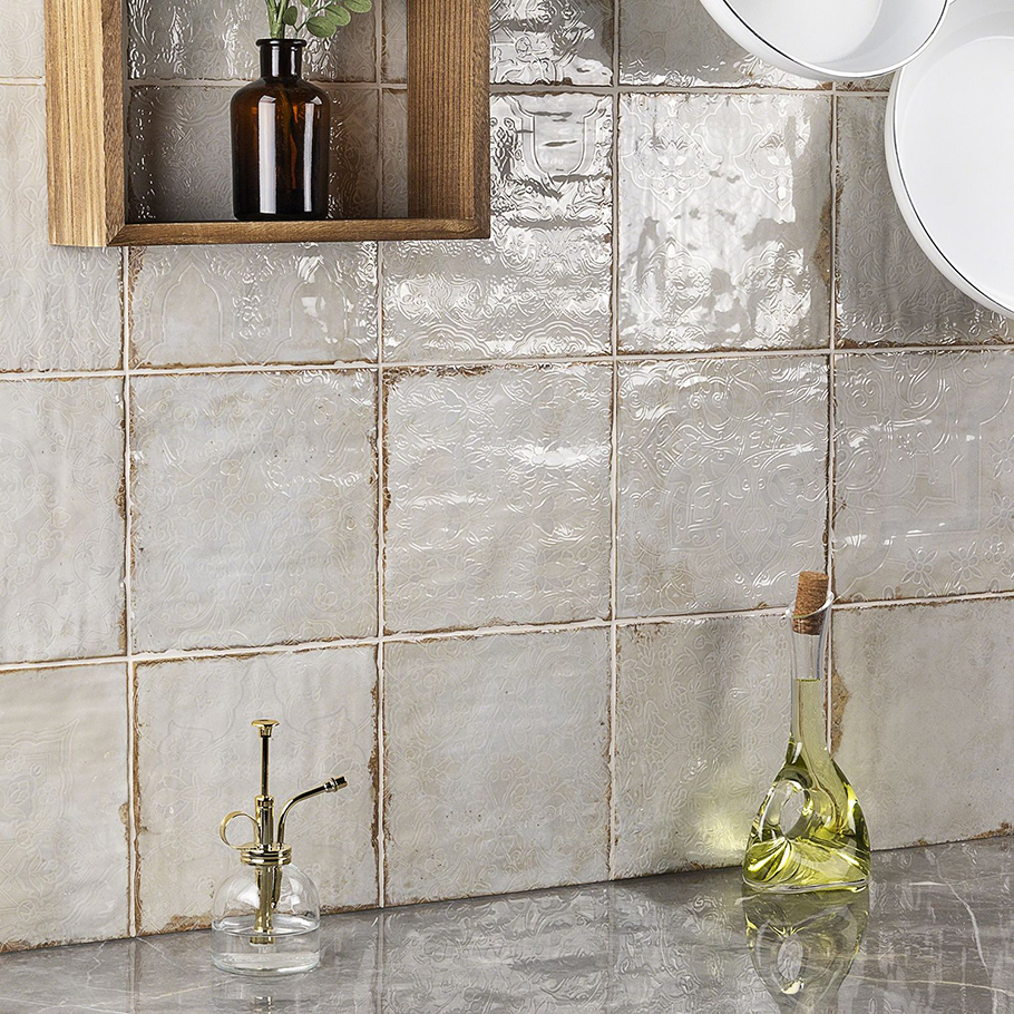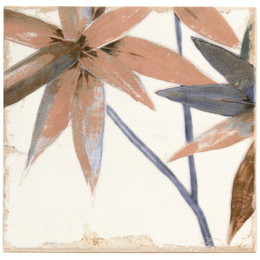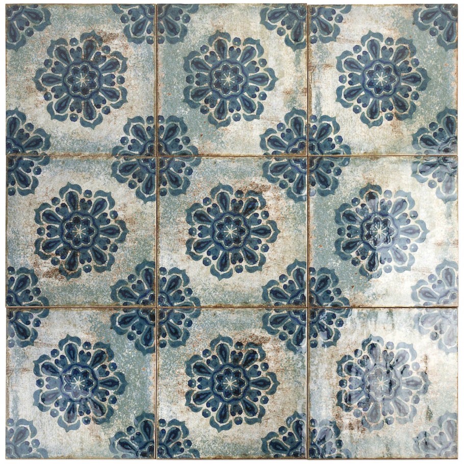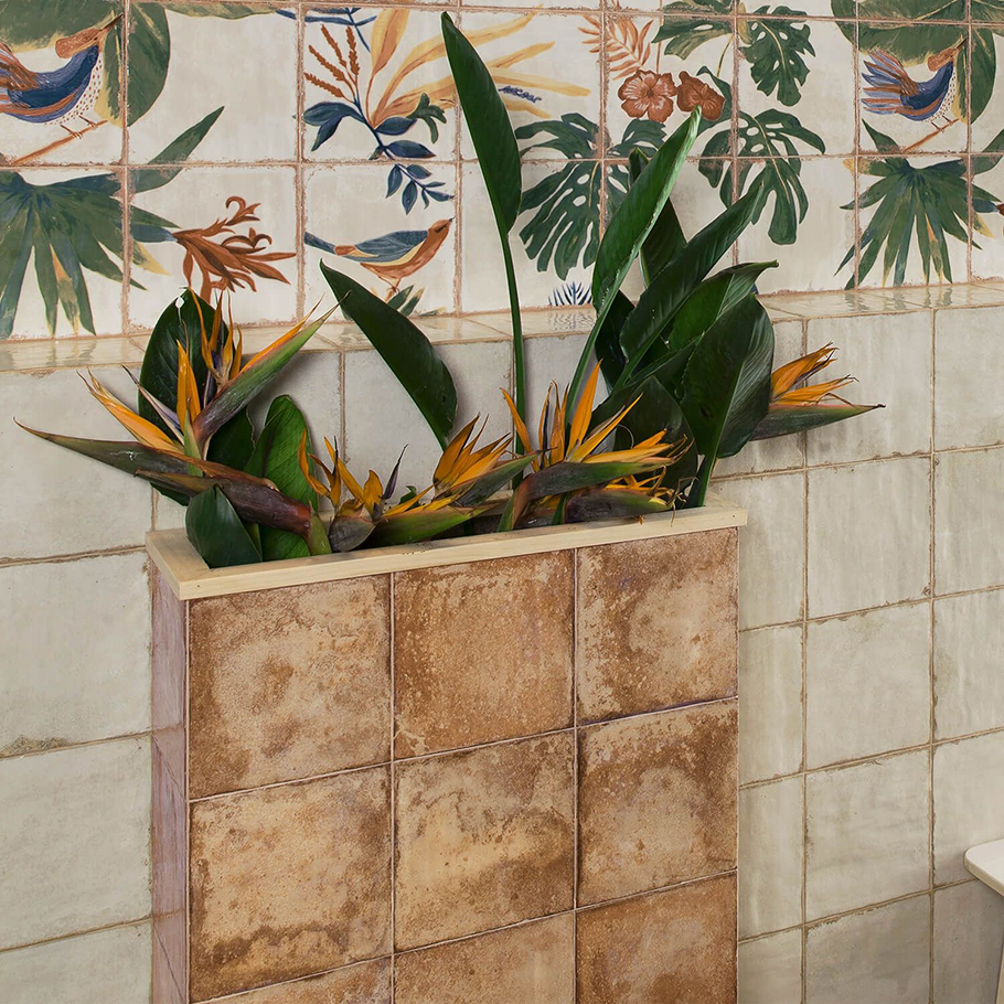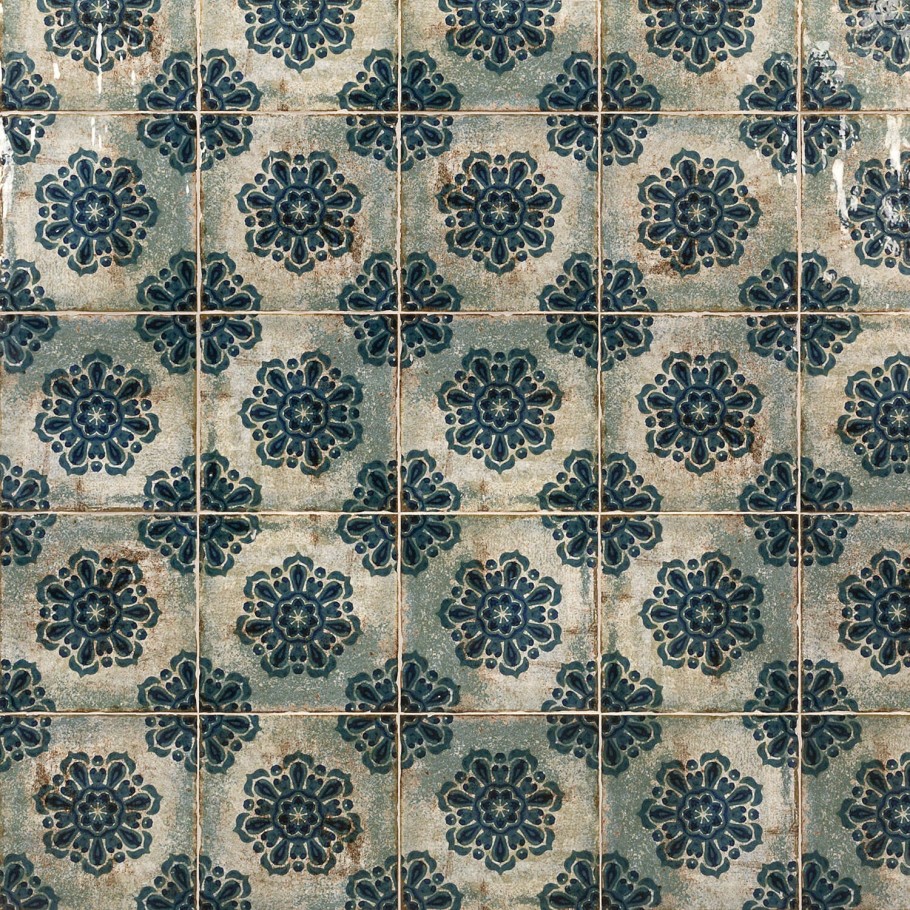 絶妙な陰影でユーズド感のあるツタ模様が描かれたアンティークな柄タイルは、時代を超越した多次元の雰囲気を与えます。