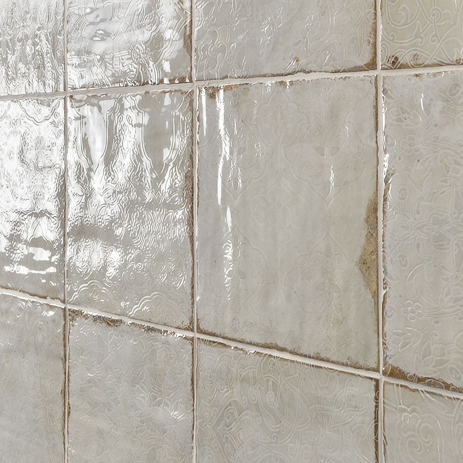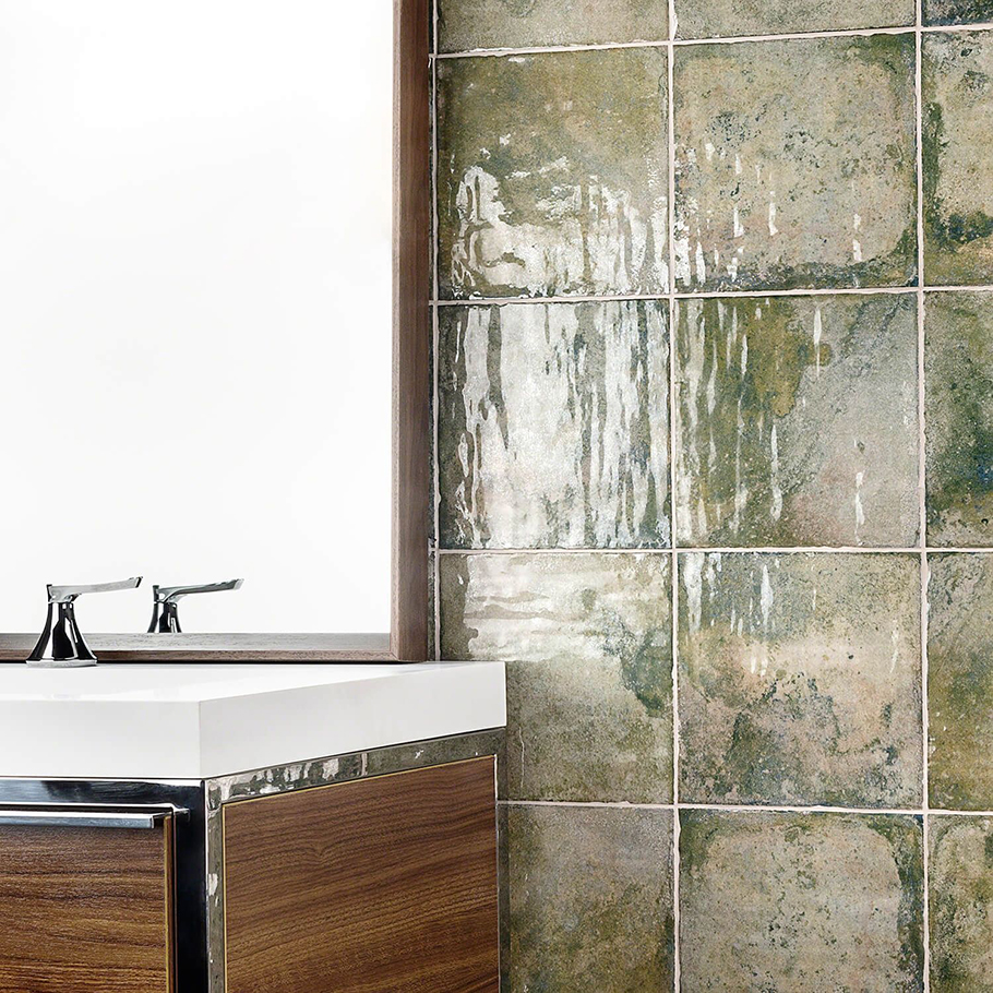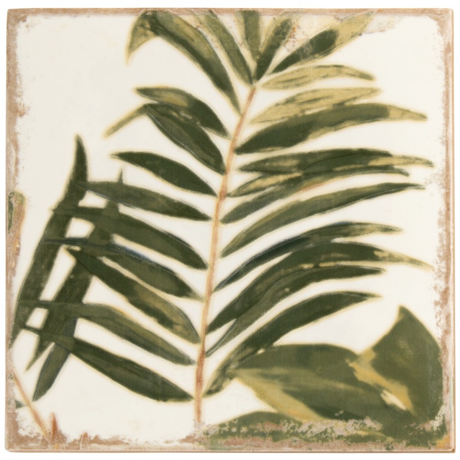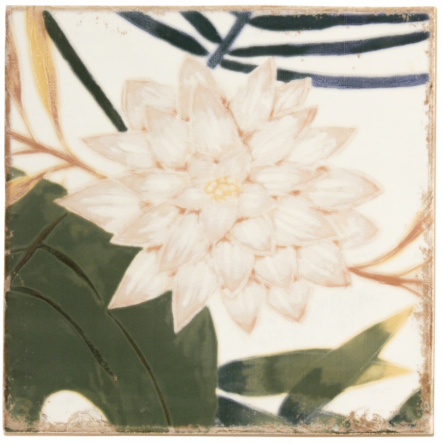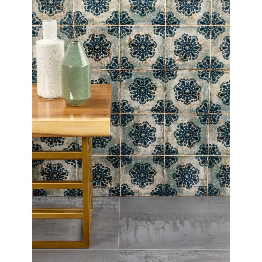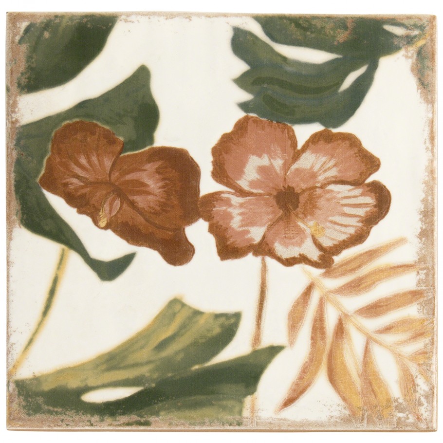 絶妙な陰影でユーズド感のあるツタ模様が描かれたアンティークな柄タイルは、時代を超越した多次元の雰囲気を与えます。