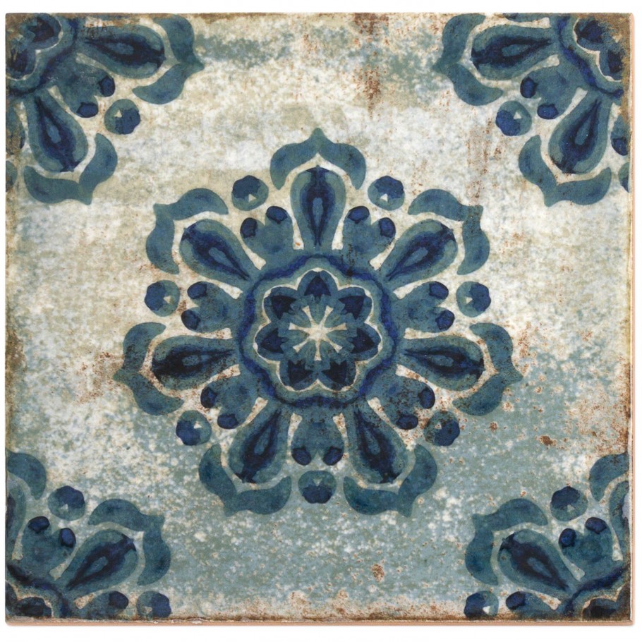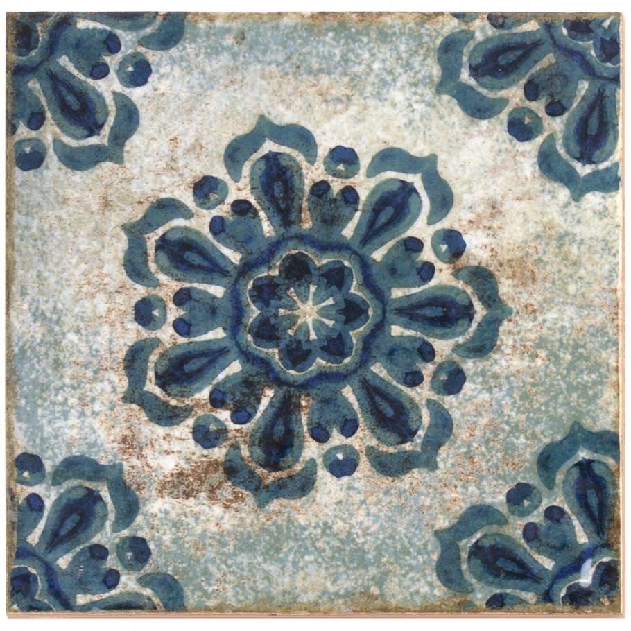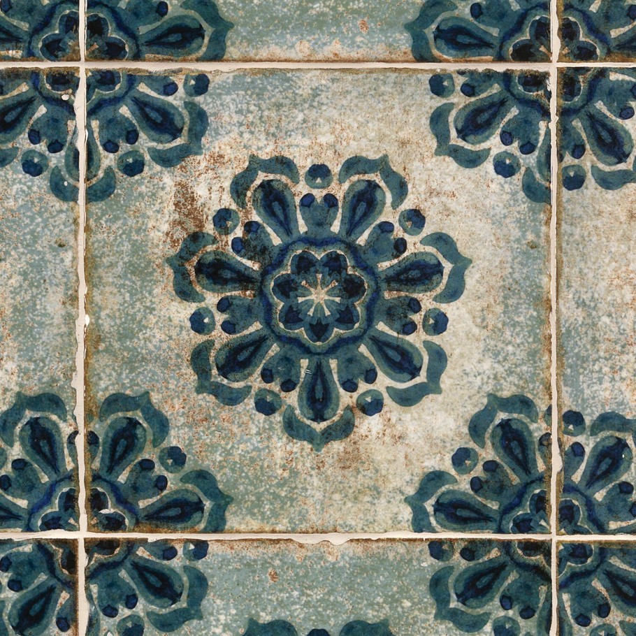 異国の海辺のカフェに入った時の、心くすぐられるシーンをイメージしたアンティークな柄タイルです。