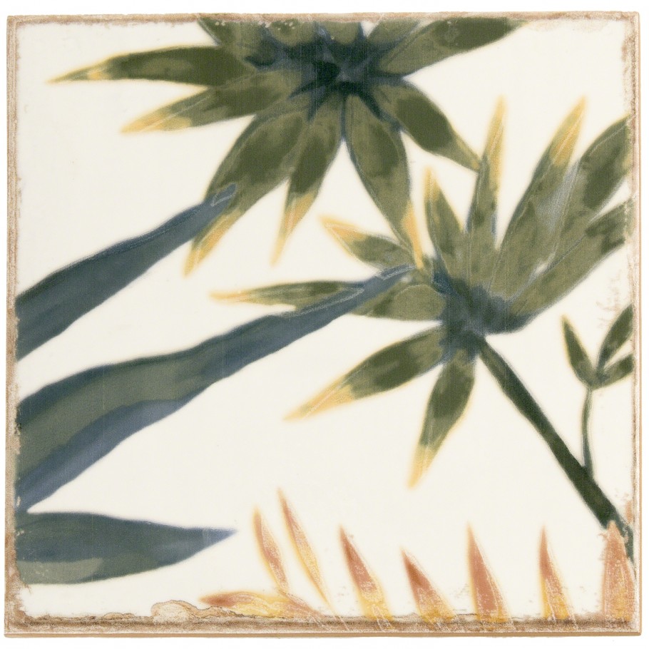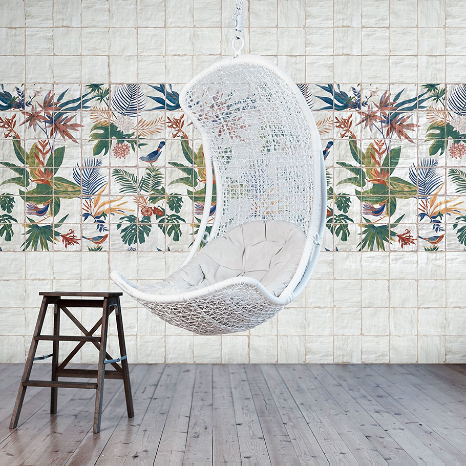 大胆な熱帯植物のランダムデザイン。島の沿岸沿いでのドライブシーンをイメージしたボタニカル柄タイルです。