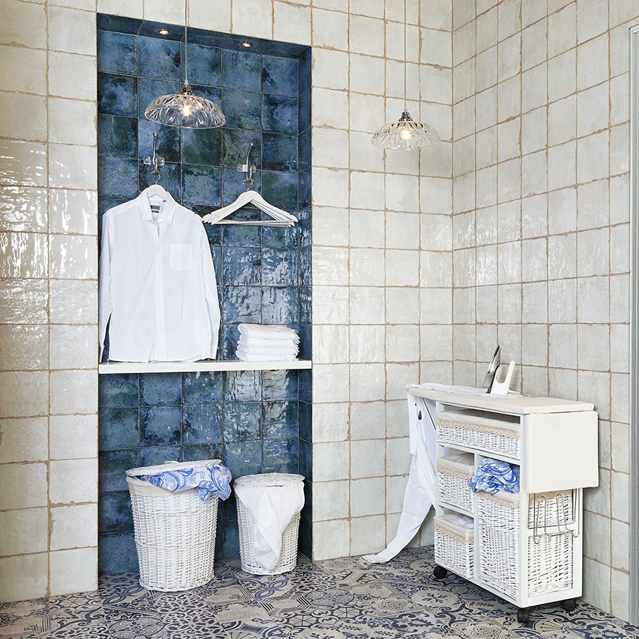 青や黄色、赤などを使用しながらも、アンティークな雰囲気でバスルームやキッチンなどに最適です。