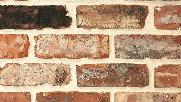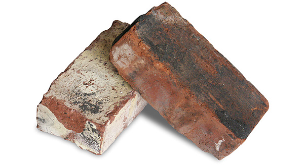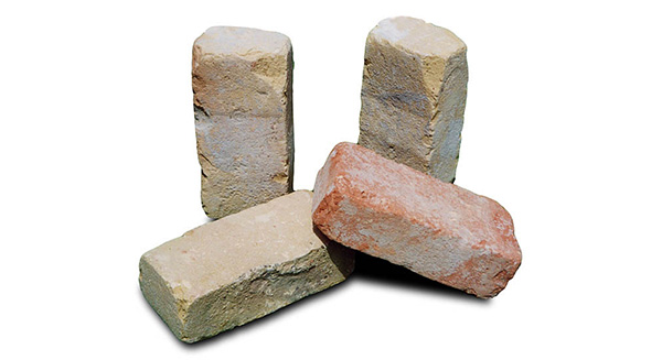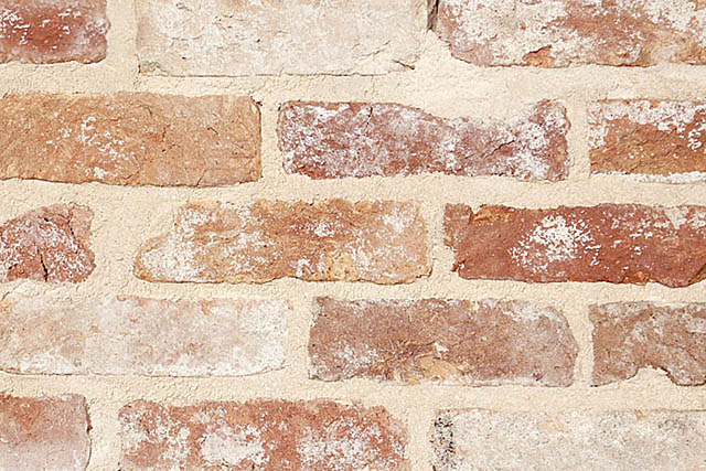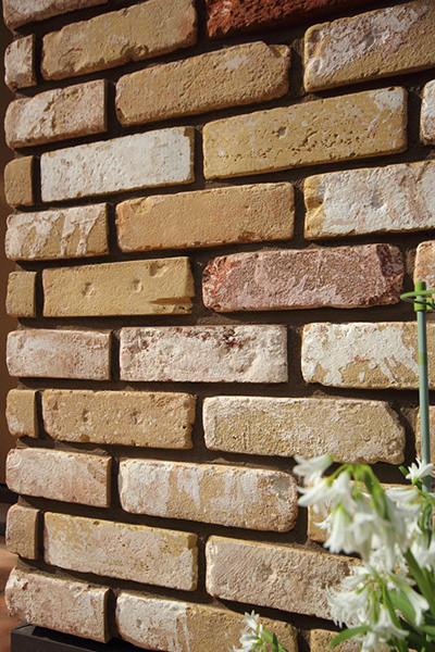 築後100~150年を経たイギリスの建物の解体時に得られる、ハンドメイドのアンティーク煉瓦です。ハンドメイドとはソリッドタイプのワイヤーカットの煉瓦を差します。イギリスでは壁自体を煉瓦で積み上げるので、硬くしっかりした素材が使用されています。外側に向かった煉瓦は所々にペンキのようなカラーが施され、その色合いの絶妙なバランスがこの煉瓦の特徴になっています。