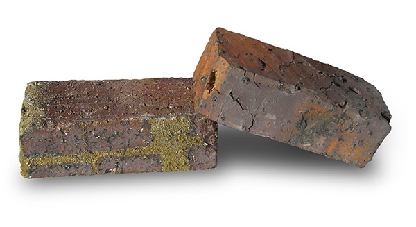 焼き物等を焼く窯の中で、最も温度が上昇する箇所(1100~1300℃)で使用され、平均20年ほど経過している煉瓦です。本来の目的は、耐火煉瓦として作られており、原料も製造方法も一般的な煉瓦とは異なっています。長時間の高温度に幾年も耐えてきたこの煉瓦は、当初の用途とは対照的な身近を彩るオブジェとして利用した時、驚くほど豊かな表情を造り上げます。