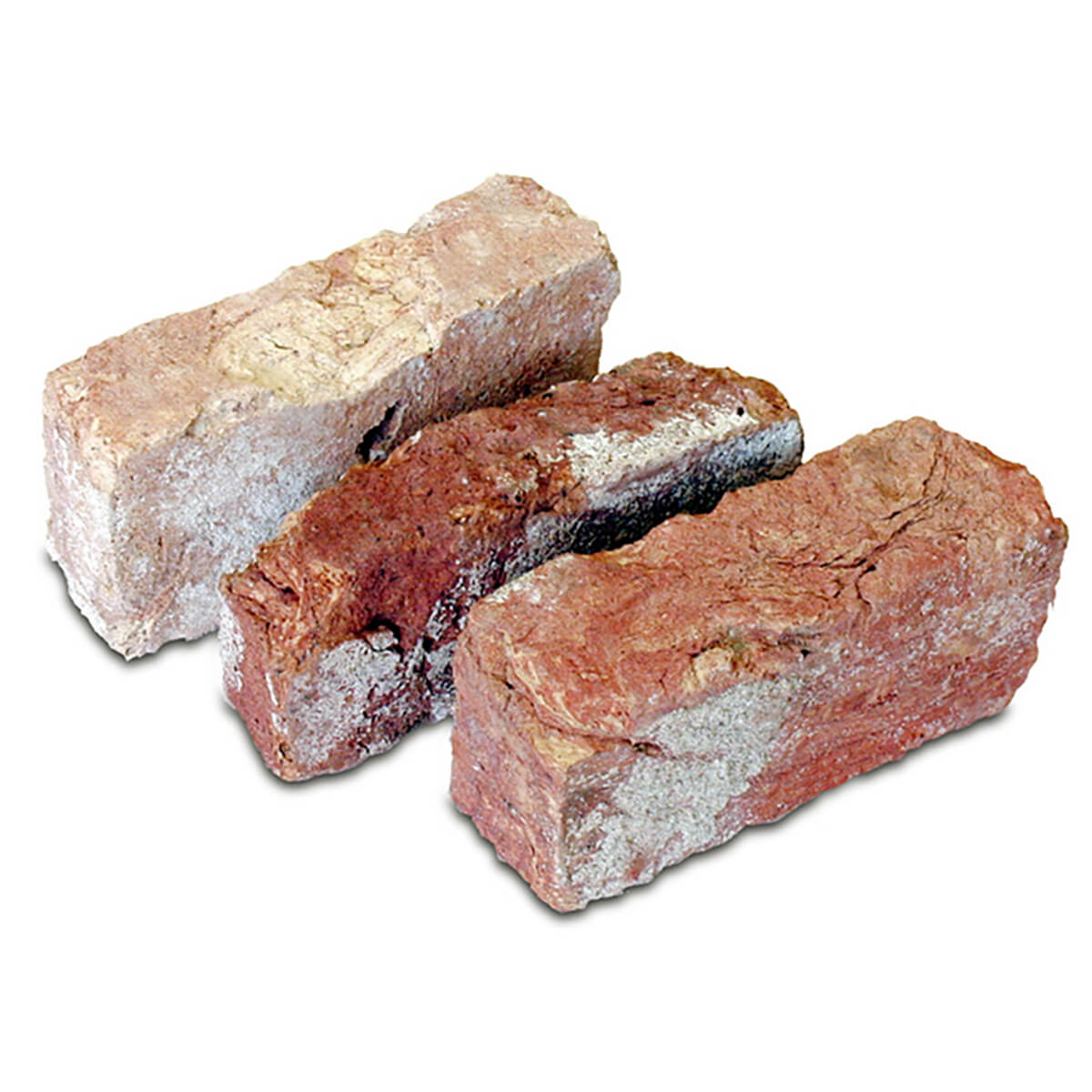 国内において主に焼き物を焼成する窯に使用された煉瓦です。平均15~30年使用された後、窯を修理解体する時に出てきます。この煉瓦 は解体する現場から古煉瓦として使用できる部分だけを厳選し、かつ、自然の色むらをバランスよく選別した煉瓦です。