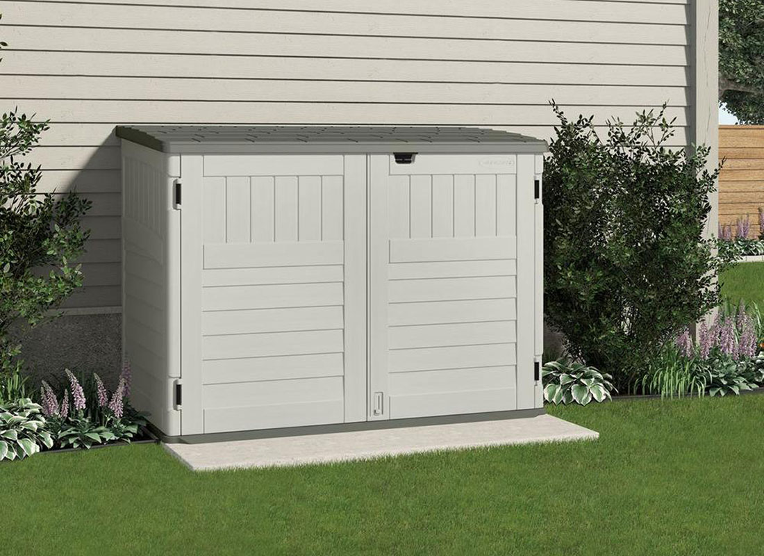 DIY組立ても可能なSUNCASTの樹脂製物置は、 アメリカントラディッショナルなウッドデザイン。