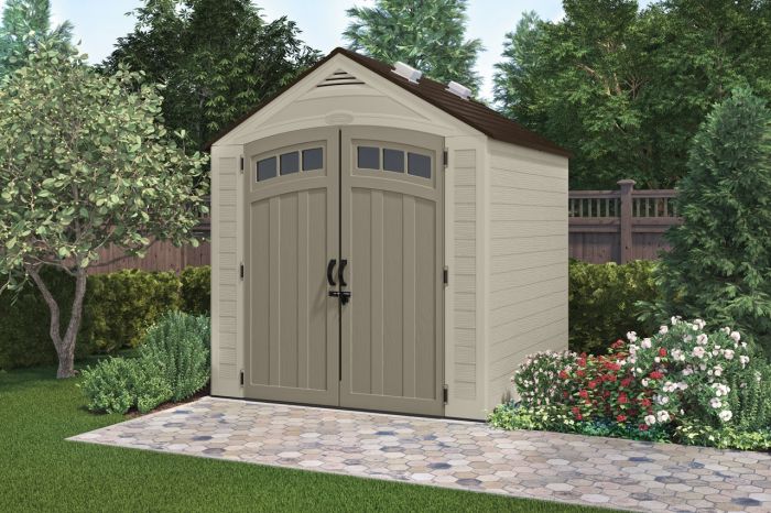 SUNCASTの樹脂製物置は、アメリカントラディッショナルなウッドデザイン。二重壁構造で強度、断熱性に優れています。