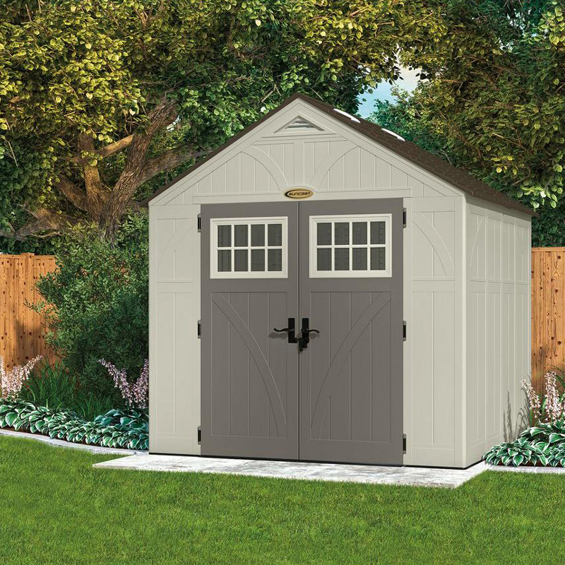 DIY組立ても可能なSUNCASTの樹脂製物置は、アメリカントラディッショナルなウッドデザイン。